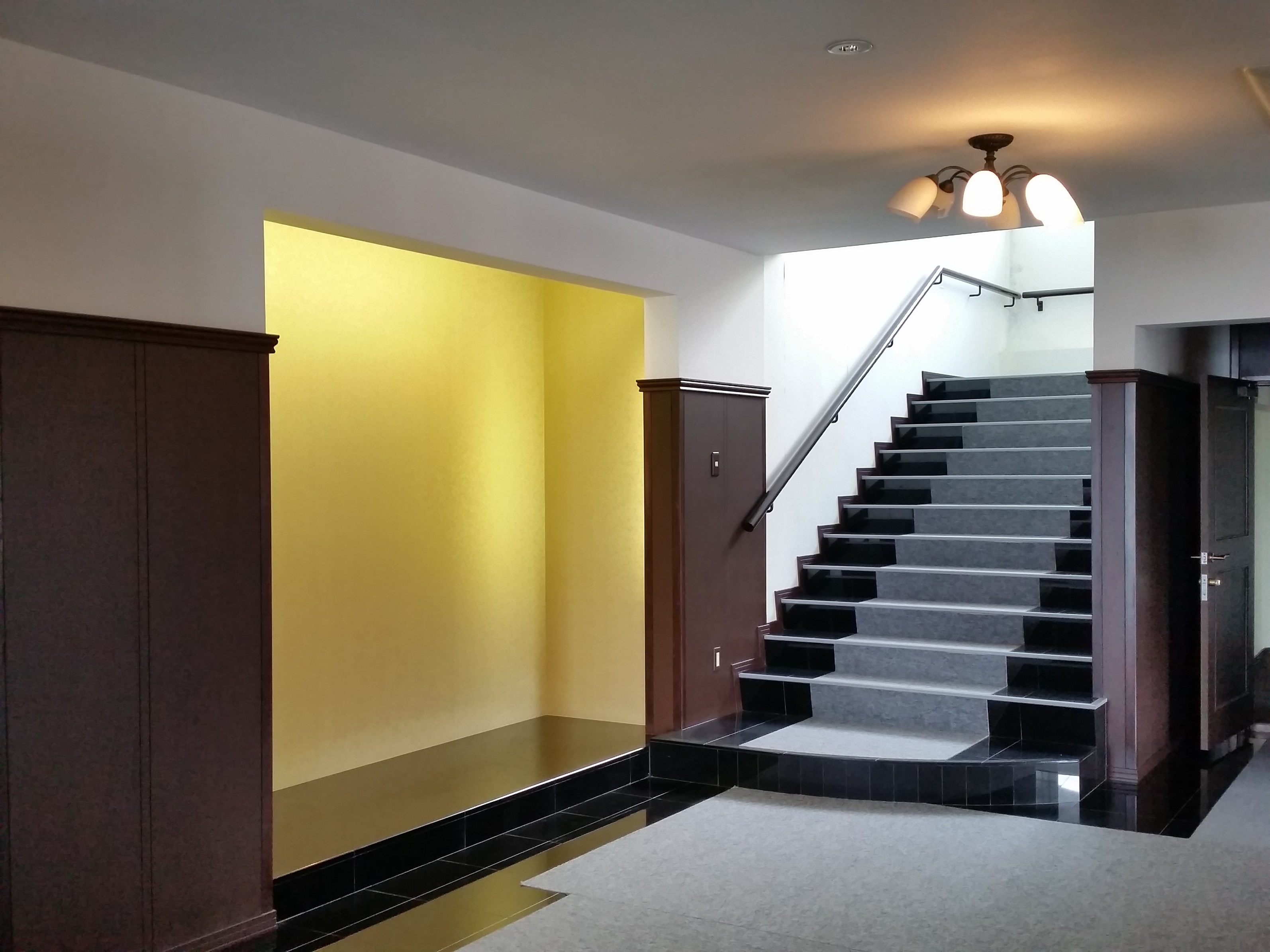 玄関内に入ると正面にはライトアップされた飾り床があり、結婚式場らしい造りのエントランス。