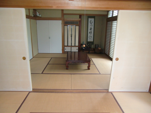 玄関入るとすぐ和室の続き間があります。掘りごたつがある部屋と床の間がある部屋。